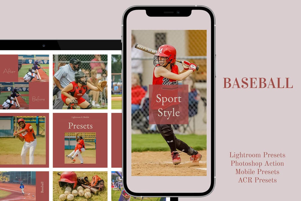 11 Baseball photography presets is a package of Lightroom Presets, Mobile presets, Photoshop Action, and ACR Presets that are the best for Instagram influencers and sports Bloggers. This Photo presets collection contains Lifestyle Bright Airy tone, Outdoor Photography theme, Softball Baseman mood, Ballpark and Bat color style, Workout Photo Editing, and Ball Game presets that convert your photos into a bright, clean & sports mood which makes your photos seem more professional.